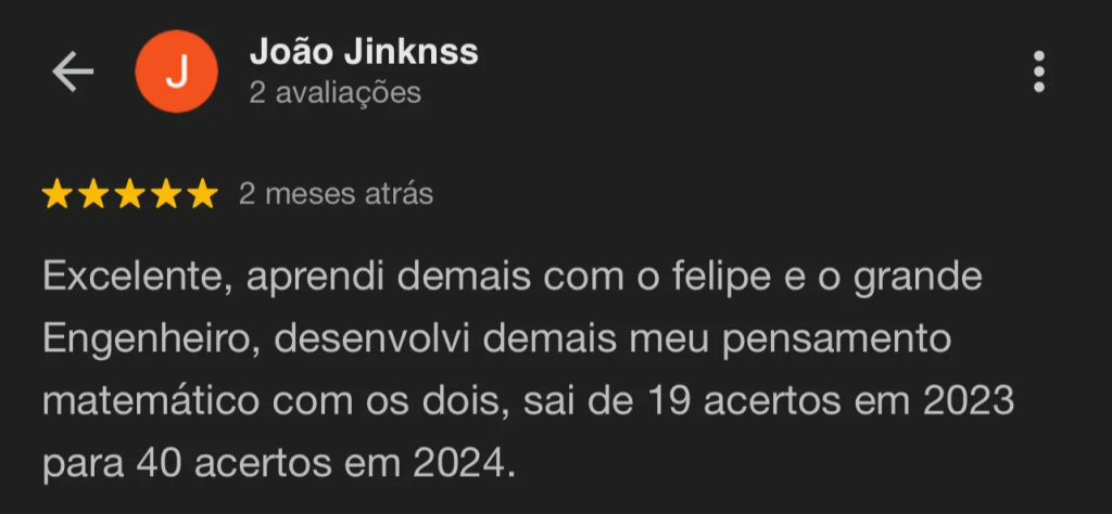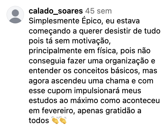 Para aprender 4 meses de conteúdo de física e de matemática e estar no mesmo patamar dos seus concorrentes